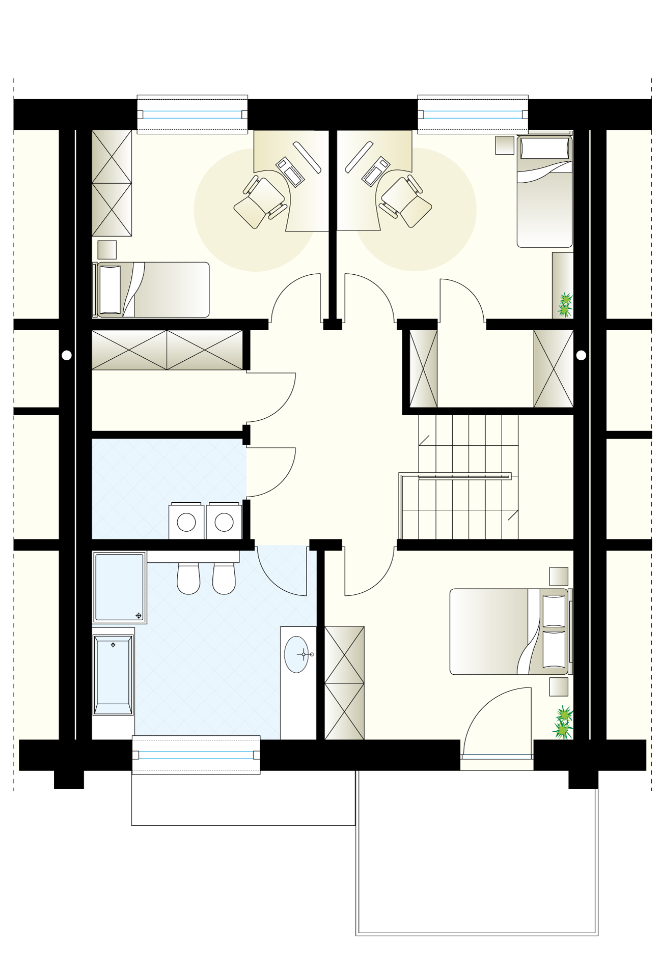 Każdy gotowy projekt powstaje na podstawie powtarzalny, sprawdzony proces projektowy. Obejmuje on nie tylko estetykę bryły, ale przede wszystkim układ funkcjonalny, proporcje pomieszczeń, komunikację wewnętrzną oraz relację domu z działką. W efekcie otrzymujecie produkt, który odpowiada na codzienne potrzeby mieszkańców – od wygodnego podziału stref dziennych i prywatnych, po logiczne rozmieszczenie pomieszczeń technicznych.